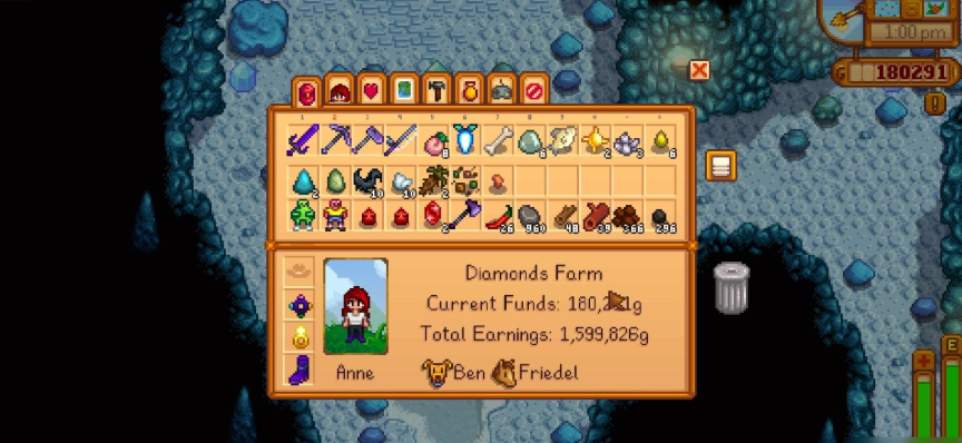 拥有“牧场主”职业后,这些铱星品质的幸运符能卖到 1,356g。此外,它们几乎是所有村民都喜爱的礼物。如果你钱够多,完全可以把它们当礼物送人。