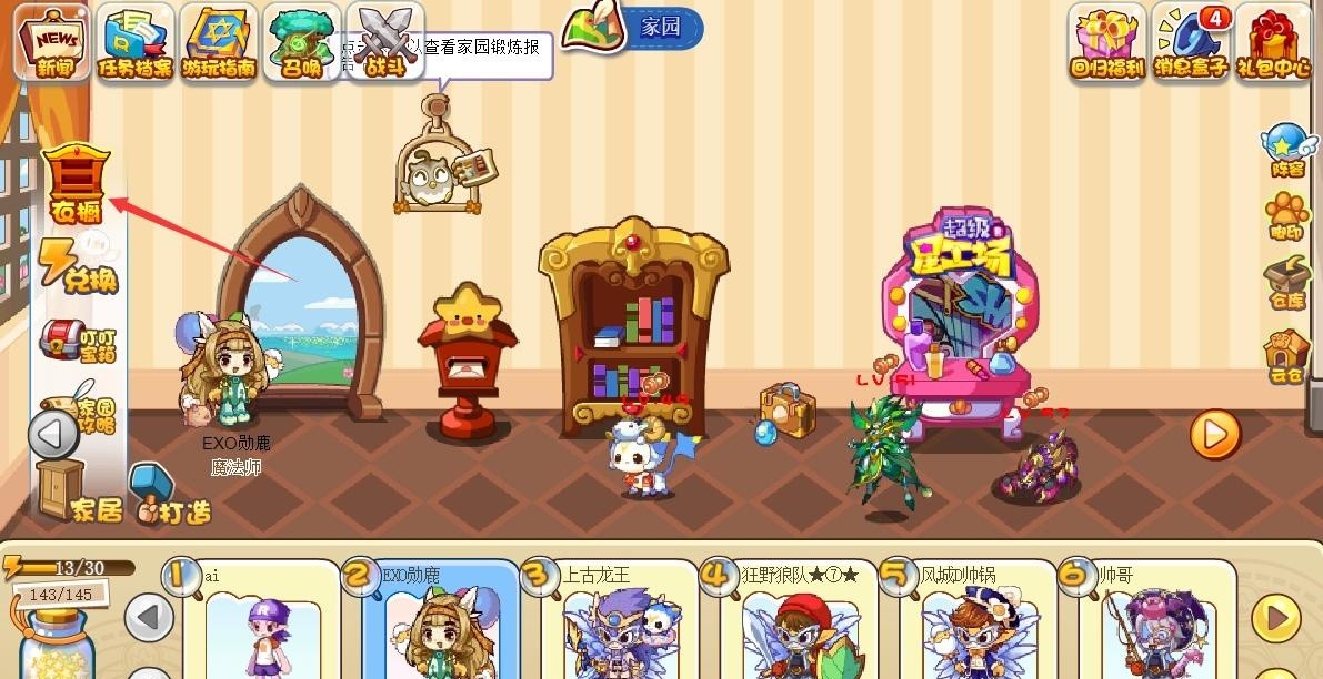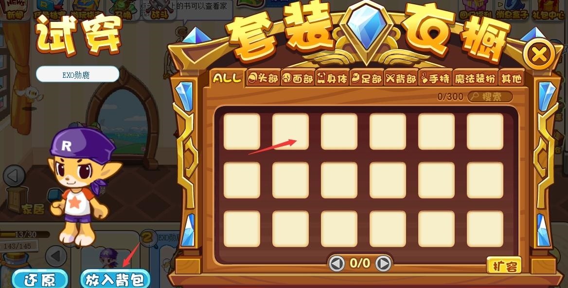 首先,玩家需要进入洛克王国游戏后,点击打开右下角的家园。玩家进入家园后,选择家居,最后就可以看到衣橱了。最后玩家选择想要的衣服点击放入背包就可以拿出来了。