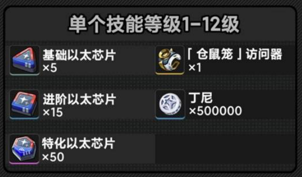 基础以太芯片*5进阶以太芯片*15特化以太芯片*50丁尼*500000(50w)
