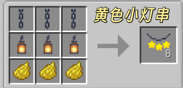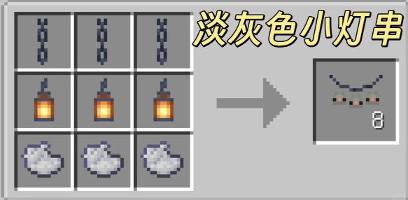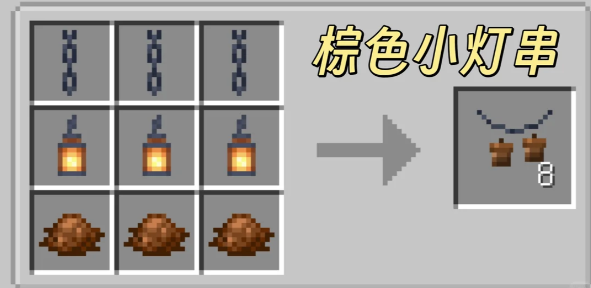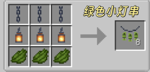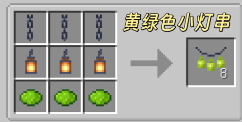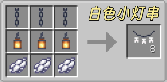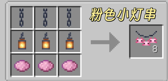 我的世界森罗物语模组中还可以制作一些小的饰品,酒馆中的灯饰制作后还可以挂出来,目前能够制作的灯串饰品有多种颜色,无色、白色、浅灰色、灰色、黑色、棕色、红色、橙色、黄色、黄绿色、绿色、青色、浅蓝色、蓝色、紫色、品红色、粉色。
