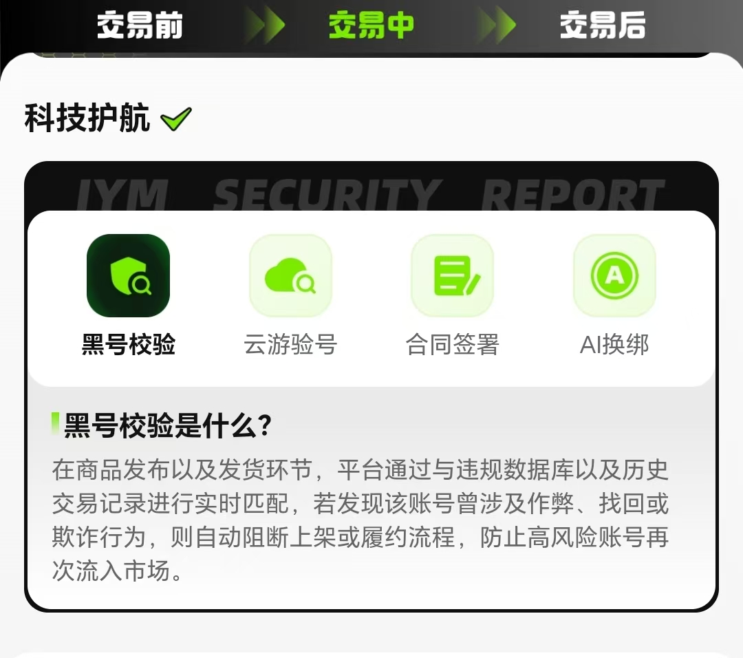 在账号验真环节执行严格标准:所有上架账号均需绑定实名信息并通过公安系统联网核验;卖家须提供有效身份证件及芝麻信用分授权,系统自动同步校验其履约能力;每笔订单附带平台出具的《账号健康报告》,涵盖登录设备指纹分析、异常行为扫描、历史封禁记录核查、找回风险评级等十余项技术检测结果,从源头杜绝黑产号、找回号、代练号流入交易市场。