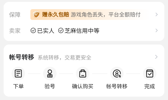 “安心购”服务体系全程护航交易:从下单冻结、真人验号、过户指导到售后赔付,形成闭环保障机制。若账号在交付后出现异常登录、被找回、信息不符等问题,用户可凭凭证申请全额赔付,无需自行承担损失。