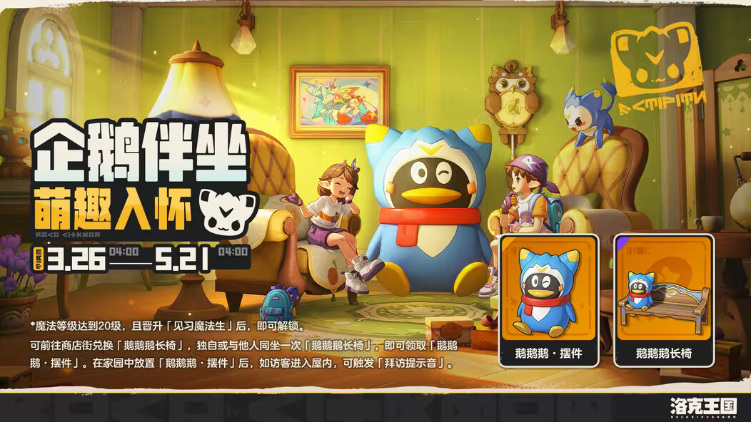 可前往商店街使用许愿星兑换「鹅鹅鹅长椅」,独自或与他人同坐一次「鹅鹅鹅长椅」,即可领取「鹅鹅鹅 · 摆件」。在家园中放置「鹅鹅鹅 · 摆件」后,如访客进入屋内,可触发「拜访提示音」。