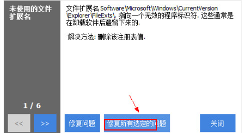 6、点击下方的"修复所有选定的问题"。