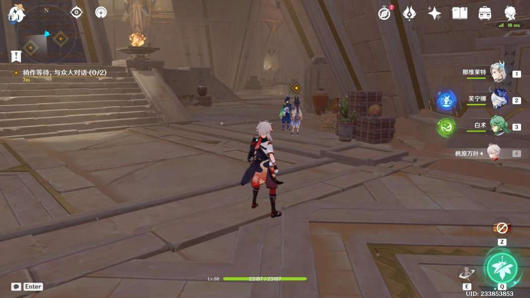 2、之后要前往阿如村,可以传送阿如村神像,与赛诺对话;