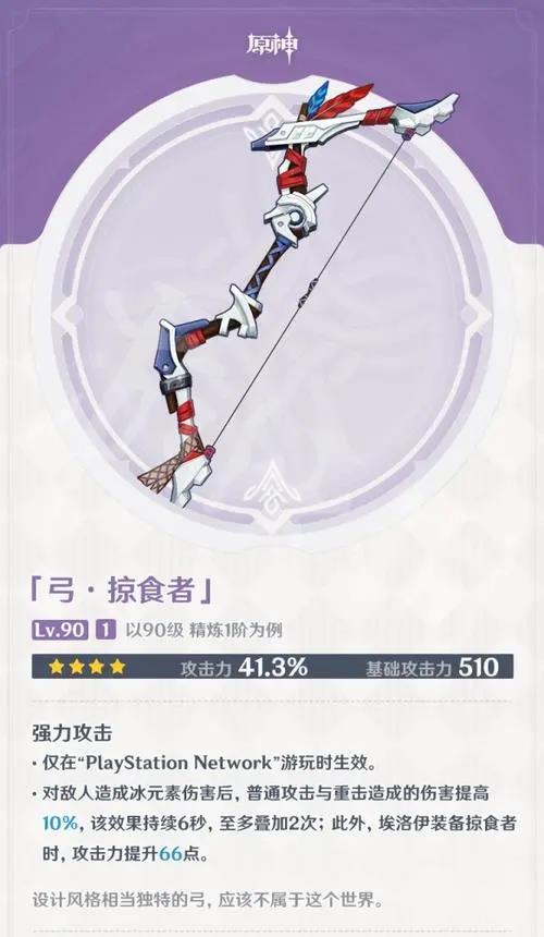 以上便是为大家带来的原神掠食者满级属性介绍,与埃洛伊、甘雨都比较适配,相信现在你已经了解到了掠食者的属性,更多武器属性敬请关注手游网。