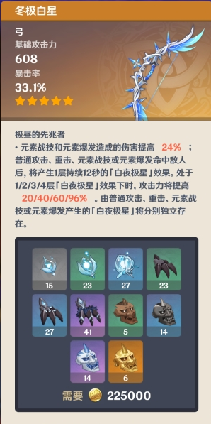 原神冬极白星属性及突破材料介绍
