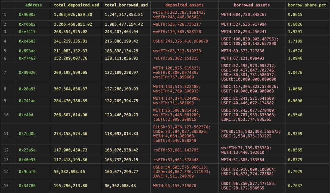 由于仅 WSETH 一种生息代币可作为抵押品,核心用途为经典循环策略,占借款总量约 50%,是储备金收入的主要来源,主要参与者包括 Ipor、Threehouse、Mellow、Summerfi 等机构。