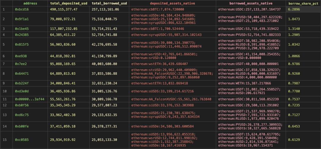 无论收益产生于何处,链上已出现可持续的收益来源,其对市场活跃度与杠杆需求的依赖度更低,与传统链上收益相关性较弱,为个人与协议提供了稳定的资金避风港。对 Sky 而言,多元化且灵活的配置策略使其能够在链上风险偏好回升时快速调整。此外,随着 USDS 成为实时规模最大的生息稳定币,结合头部借款人的行为可以看出,Sky 间接助力其他协议维持利率水平。