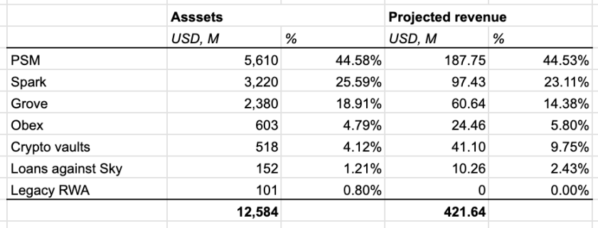简化资产概况与预计收益结构,数据来源:Sky 官方