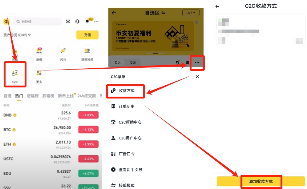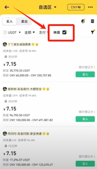通过C2C交易添加储蓄卡收款方式后,可选择合适的商家进行USDT兑换。