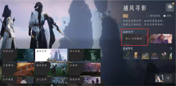 首通之后在同游-闯荡-捕风寻影界面可以选择章节进行匹配,在卷三·灯会嬉游中有额外三个成就。