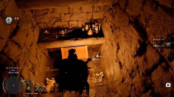 5、蹲着进去可以看到宝箱,开启宝箱即可获得这把弓。