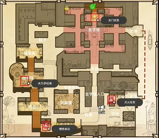 鹅鸭杀游戏里古代沙漠地图是S2赛季新出的地图,很多玩家还没有很熟悉这个地图,这个地图中鸭子阵营有四个任务,以下是对这个四个任务的具体说明及位置标注。