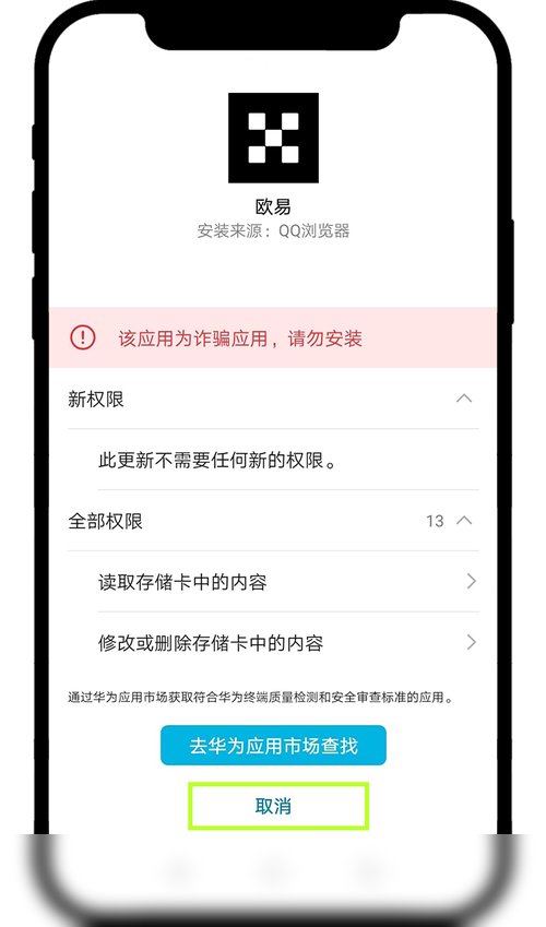 HarmonyOS 5.0 用户需先在应用商店安装卓易通,搜索并下载欧易App后,关闭Wi-Fi与移动数据,再点击安装。HarmonyOS 4.0 用户需进入设置-安全-更多安全设置,关闭外部来源应用检查;再到系统和更新-纯净模式关闭增强防护;遇到风险弹窗时选择取消管控继续安装即可。