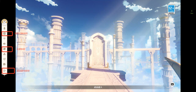 4. 游戏左侧功能栏包含画质调节(HD图标)、全屏切换(音量键下方按钮)及退出游戏等核心操作选项。