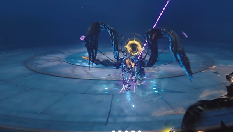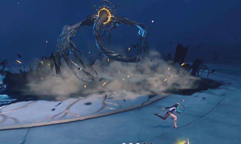 归环潆的专属契约使灵是特里忒拉,外观是一个软萌的水母形象。特里忒拉的性格也和潆有些相似,有些怕事,但其战斗与辅助能力绝对不容小觑。在一些需要解谜和推演的关卡中,特里忒拉拥有强大的核心控场能力。尤其是在面对强大的归环boss时,她可以凭借自身的冰属性技能实现快速控场,冻结敌人,为整个团队争取到宝贵的输出与续航时间,大大提升了战斗的容错率。同时,得益于其出色的探测能力,在破解各类机关谜题时也能发挥独特作用。