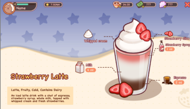 游戏核心围绕真实感与趣味性并重的饮品调配系统展开。从经典意式浓缩、绵密奶泡的卡布奇诺,到夏日特调的冰滴冷萃与水果风味冰饮,每款饮品均依据实际咖啡工艺设定专属流程:研磨粗细、萃取时长、奶泡厚度、温度控制等参数均有明确反馈。操作界面采用卡通化视觉呈现,步骤清晰、提示直观,新手仅需数分钟即可掌握基础节奏,全程无惩罚机制,专注体验创造本身的愉悦。