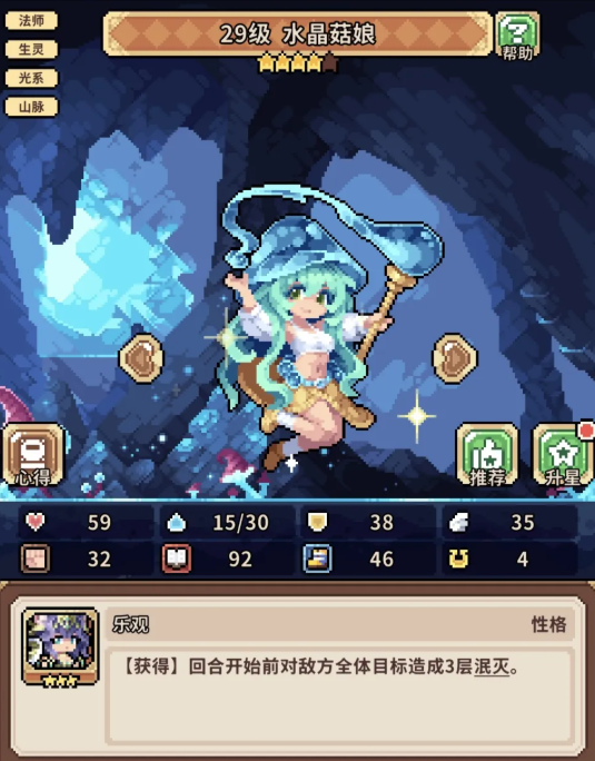 首位推荐角色为「水晶菇娘」。她以稳定的蓝量回复能力著称,是当前多数主流体系中的通用型辅助。其回蓝数值在同阶角色中处于前列,可有效支撑依赖技能循环的队友,尤其适配大招流阵容;同时在反击流等后期体系中仍具备不可替代的续航价值。无论前期过渡还是中后期功能补强,该角色均能实现即抽即用、快速融入。
