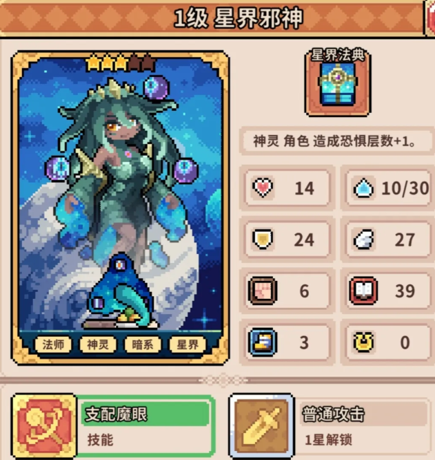 最后一位是「星界邪神」。她专精单体爆发与精神压制:锁定敌方精神值最低目标发动三次连击,每次命中削减目标4点伤害;同时附带恐惧效果,实现软控与减伤双收益。此外,她可吸收敌人5点魔力,并在目标弱点暴露时使自身魔力值翻倍,极大强化法师系技能释放频率与强度。搭配大招流队友时,能最大化其瞬发高伤特性,亦可在前期挑战中提供关键控场支持。