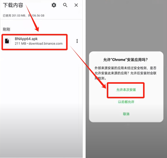 从官网下载APK时需忽略系统安全提示,安装过程中选择"允许本次安装"。