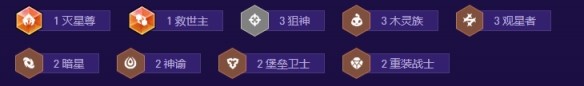 1灭星尊、1救世主、3狙神、3木灵族、3观星者、2暗星、2神谕、2堡垒卫士、2重装战士