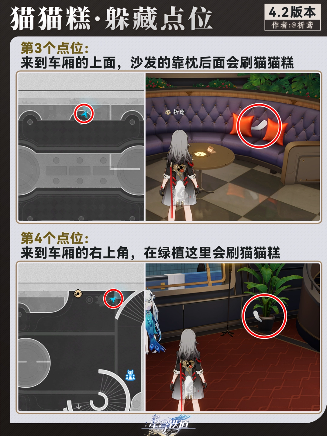星铁4.2版新增了一个常驻活动—列车改造奇遇攻略,在派对车厢每周都会随机刷出3个猫猫糕,每周最多抓9个。猫猫糕随机躲藏在车厢内,这期就和大家分享一下猫猫糕全部的躲藏点位
