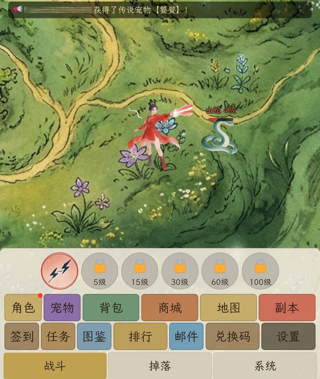 游戏采用轻操作设计,进入后默认开启自动战斗模式,角色将智能识别周边怪物并发起攻击。玩家可通过点击地图切换场景,系统将自动导航至新区域继续挂机修炼。过程中亦支持手动释放技能、查看背包、调整宠物配置或修改角色属性,兼顾便捷性与策略深度。