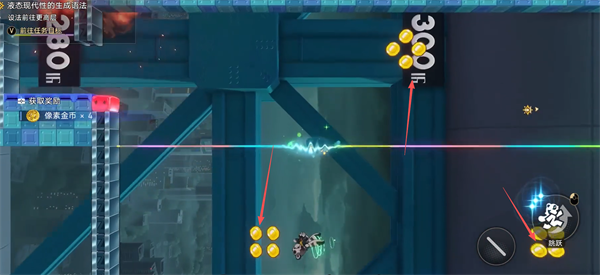 来到如图,这几堆金币这里,这里有一条超长重力线