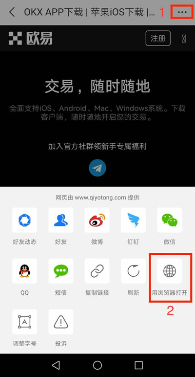 非浏览器扫码需点击右上角菜单选择【在浏览器打开】,再执行下载操作。