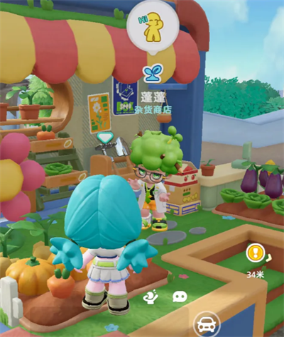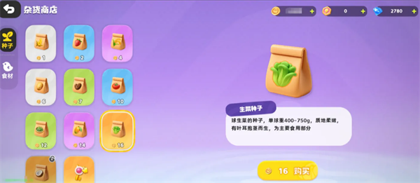 去「杂货商店」找 NPC 蓬蓬,直接买小麦、水稻、水果等种子。