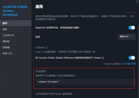 2、在右侧找到【启动选项】,然后在下方的输入框中输入代码【-culture="zh-hans"】,然后在上方的【语言】那一栏将语言改成【简体中文】。