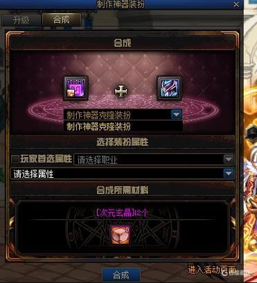 1)通过次元玄晶升级,玩家在神器装扮升级界面中放入1件稀有装扮后,选择制作神兽神器装扮。