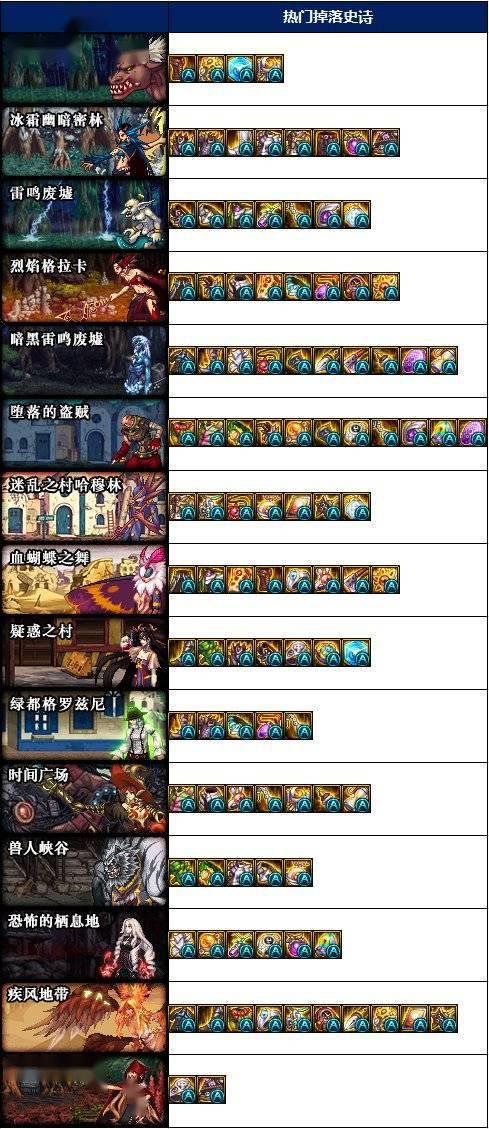 3.其中不同的地下城掉落的史诗装备均不同,不同地下城掉落的热门装备如下: