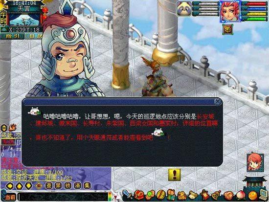 来到长寿村找到太白金星(53,18),太白金星一口否认有星官私自下凡,也不愿给你一看 星官名册,你便决定找来一壶美酒灌酒天宫的守门天将,终于从守门天将口中得知,星官名册由天枢星官、天璇星官、天玑星官、天权星官、玉衡星官、开阳星官、 摇光星官七位星官轮流看管,七位星官每天都在七个场景巡逻,太白金星也不知道哪天是哪位星官带在身上,你唯一逐个去寻找。