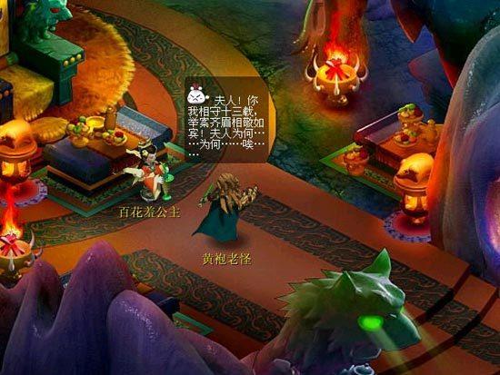 乔装完毕后,你大摇大摆地来到波月洞找到黄袍老怪(14,94),黄袍老怪跟你说起百花羞 公主始终想不起天庭披香殿之事,让他甚为烦恼,你一听便深信黄袍老怪就是奎木狼,拿出乾坤镜一照,果然看到他的星官真身,不料却被黄袍老怪看到乾坤镜,识 破了你的身份,你劝说黄袍老怪在玉帝发觉前赶快返回天庭,他却一口拒绝,还派出部下猫灵擒下你。