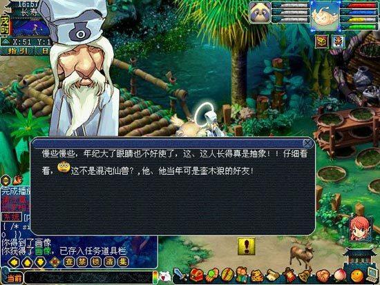 在碗子山晃晃荡荡终于找到了混沌兽(23,133),虽然很对不起他但你还是打晕了他,并且绘画下他的相貌后,找到长寿村的太白金星帮助你乔装成混沌兽的模样。