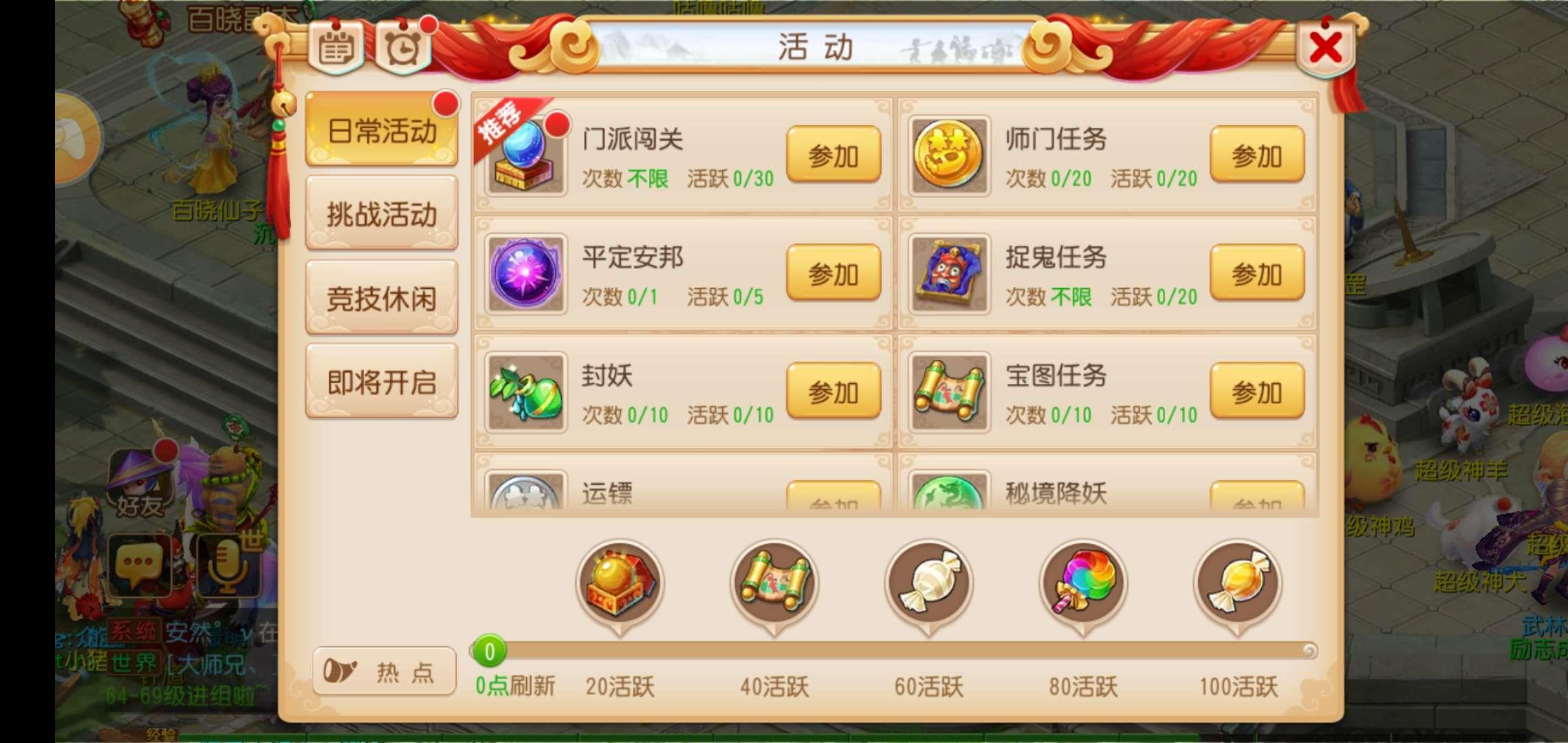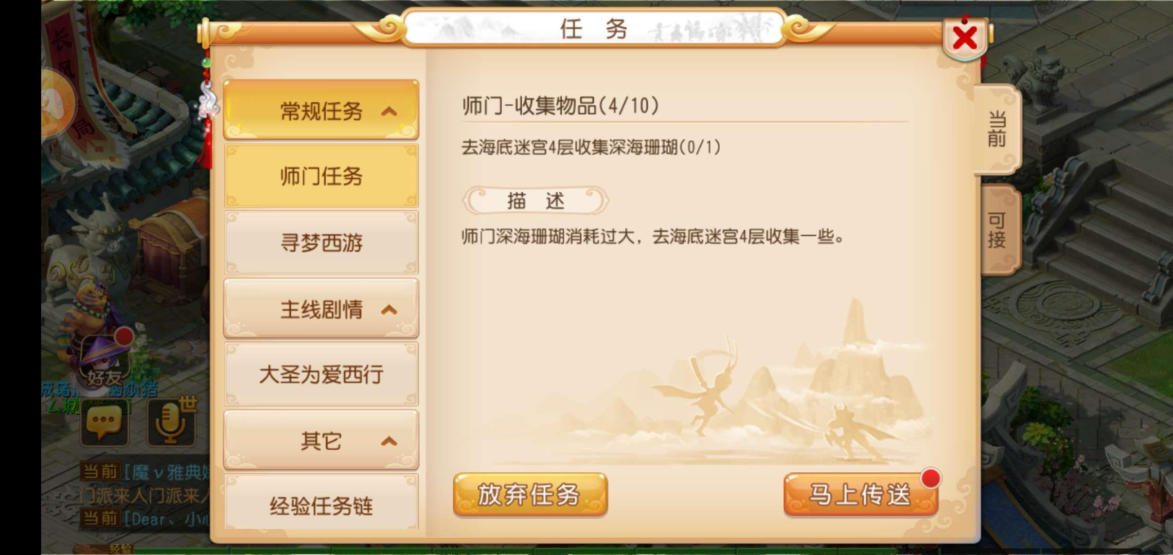1.进入游戏优先做主线任务,支线任务,红尘试炼任务。其他事情先不要做,做完这些再做7个师门任务。基本上就是20级。然后师门任务先不要做了,留着晚上10点以后做,反正优先主线任务,支线任务,红尘试炼。