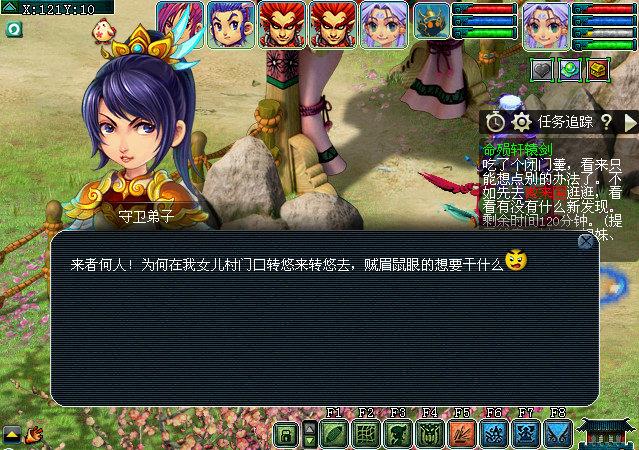 2.再次回到女儿村,交谈找出带口信的人族女性角色即可。然后在场景内找到NPC:白小飞(82,43)、羽鸳(54,65)、方翎翎(24/96)和七七(63,122)。