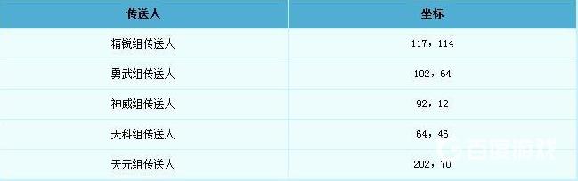 2.入场地点有五处,传送人和传送坐标也不一样。