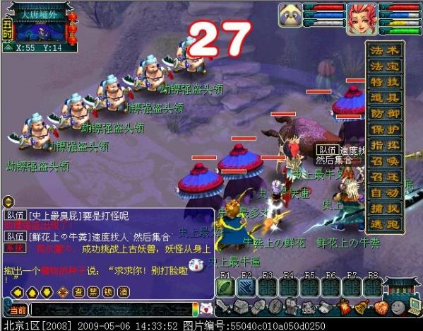 6.打听到强盗具体坐标后,就由队长带队,找到强盗,杀死他,抢回镖银,这个的难度和封妖差不多。
