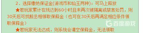 2、选择缴纳保证金(游戏币和仙玉两种):可马上释放