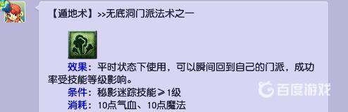 15.遁地术:平时状态下使用,可以瞬间回到自己的门派。
