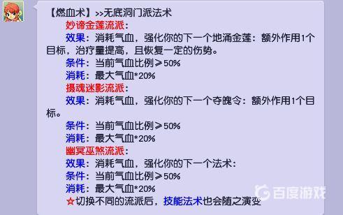 16.燃血术:消耗气血,强化你的下一个法术。例如:使“夺命咒”作用目标数量翻倍(目标为玩家时无效)或“追魂刺”造成伤害翻倍(目标为玩家时无效)