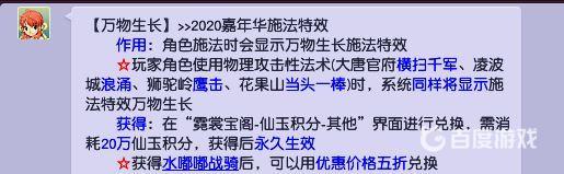 梦幻西游目前施法特效有五种,分别是比翼飞、万物生长、牛势冲天、烈火麒麟、虎啸生风,它们都需要需消耗20万仙玉积分,在“霓裳宝阁-仙玉积分-其他”界面进行兑换(拥有水嘟嘟战骑后,可以用优惠价格五折兑换)