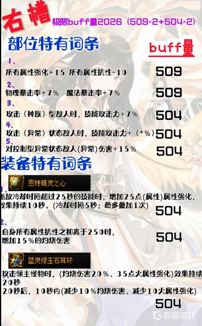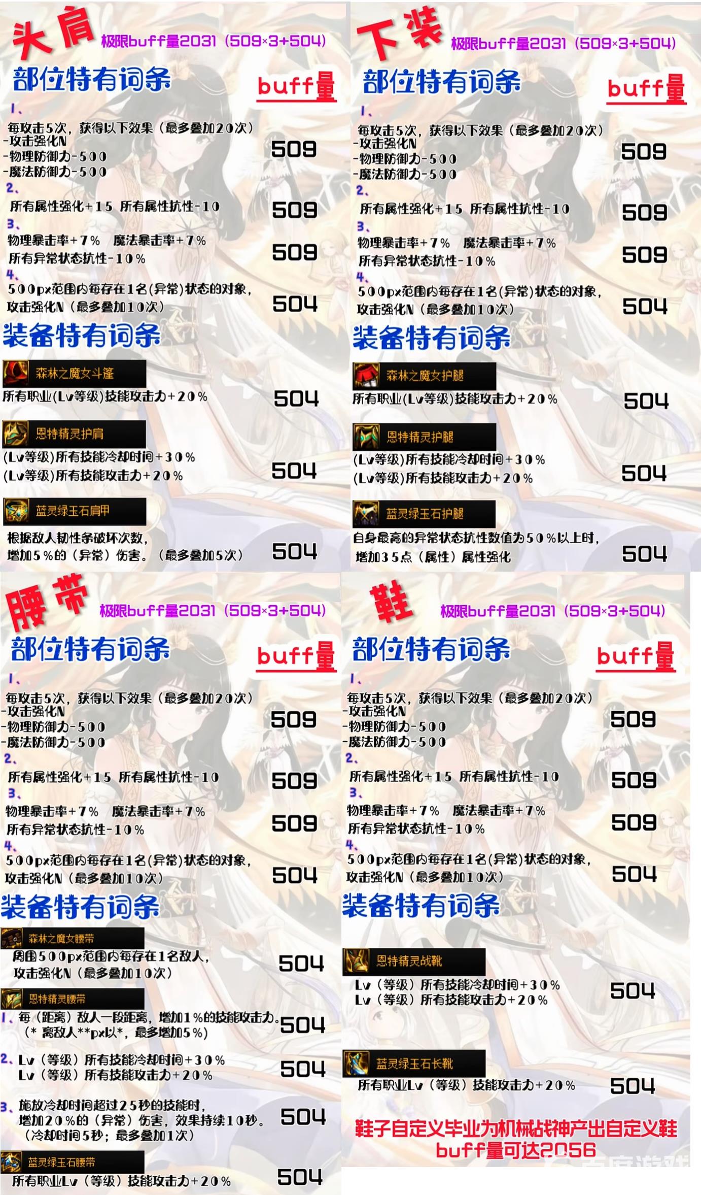 1、自定义头肩、下装、腰带和鞋选择攻击叠加、属性强化和暴击率词条。