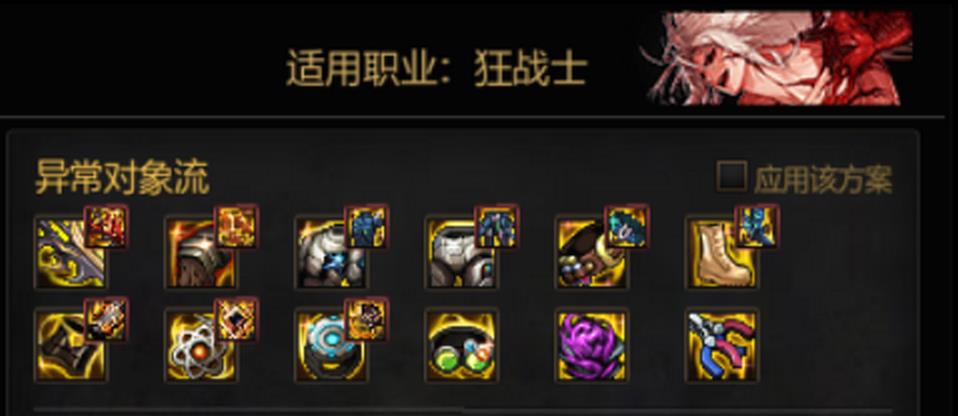 改版后的强势直伤流派,通过装备可以给自己赋予异常状态的装备触发手镯/右槽耳环三部位的强化效果自成一体,有不错的伤害强度和生存能力的同时也能快速对敌人附加异常,同样也是开荒推荐配装,自定义部分为通用直伤方案。【贴膜】头肩、下装和鞋子推荐冰花,上衣和腰带推荐猎食,首饰推荐天天天或者火火火。