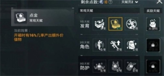 1、将所有天赋点前期都点在“点金”上,可提高开箱获得高价值物品的概率,进而增加我们的收益;