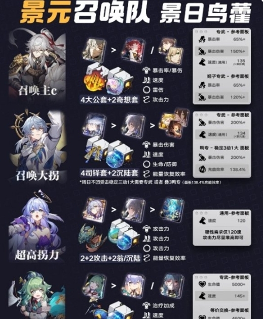 1、所谓的景元召唤队即景元、星期日、知更鸟、霍霍。