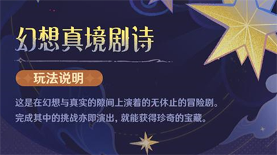 4、每期的幻想真境剧诗的开幕角色会获得幻境祝福,该祝福在深境螺旋等剧场外的冒险中也会生效;